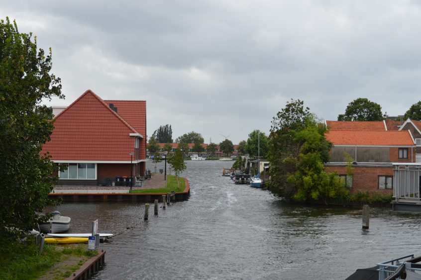 Zuiddijk: Het water op de Zaan werd een beetje richting Hanenpadsluis geblazen en wat hekken die omgewaaid zijn