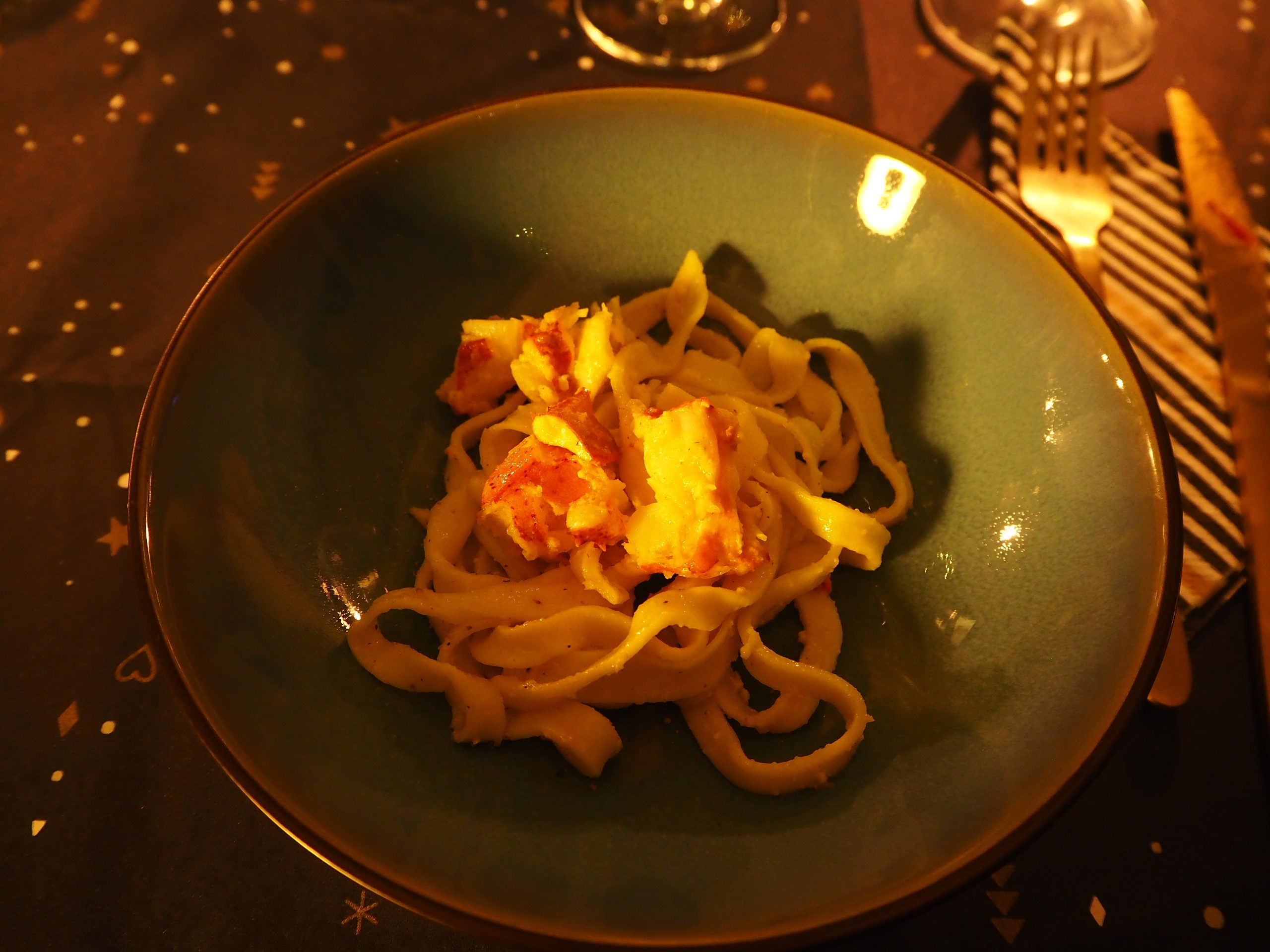 Gang vier, zelf gemaakte tagliatelli met kreeft en Parmenzaanse kaas(zit er tog noch iets Zaans in)