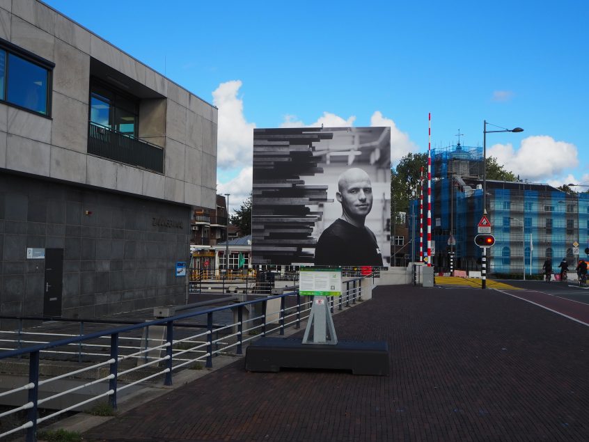 Wilhelminabrug: In verband met de maand van de industriele cultuur zijn er weer overal grote foto’s geplaatst, dit keer van personen die in de industrie werken