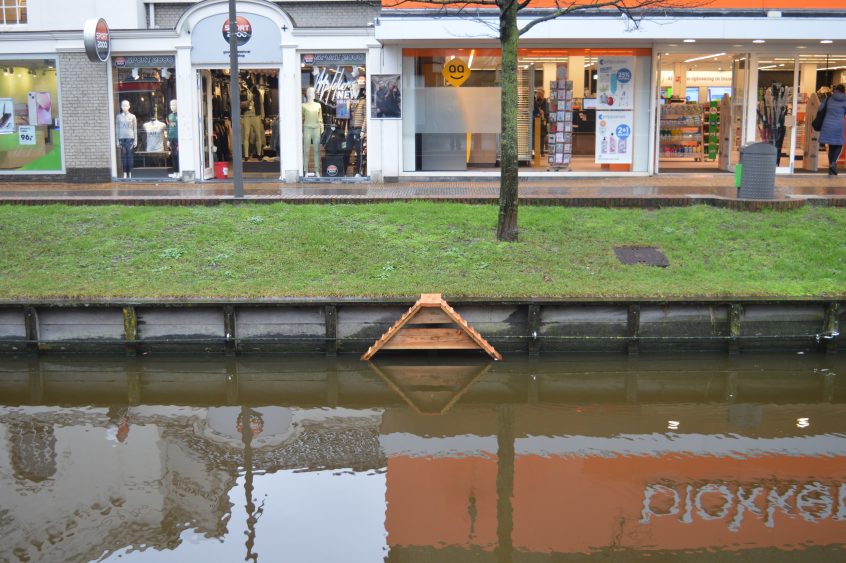 Gedempte gracht: Op verschillende plakken zijn dit soort trappetjes verschenen. Ik denk dat ze voor luie eenden zijn de het water in of uit willen.