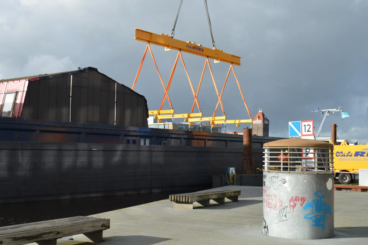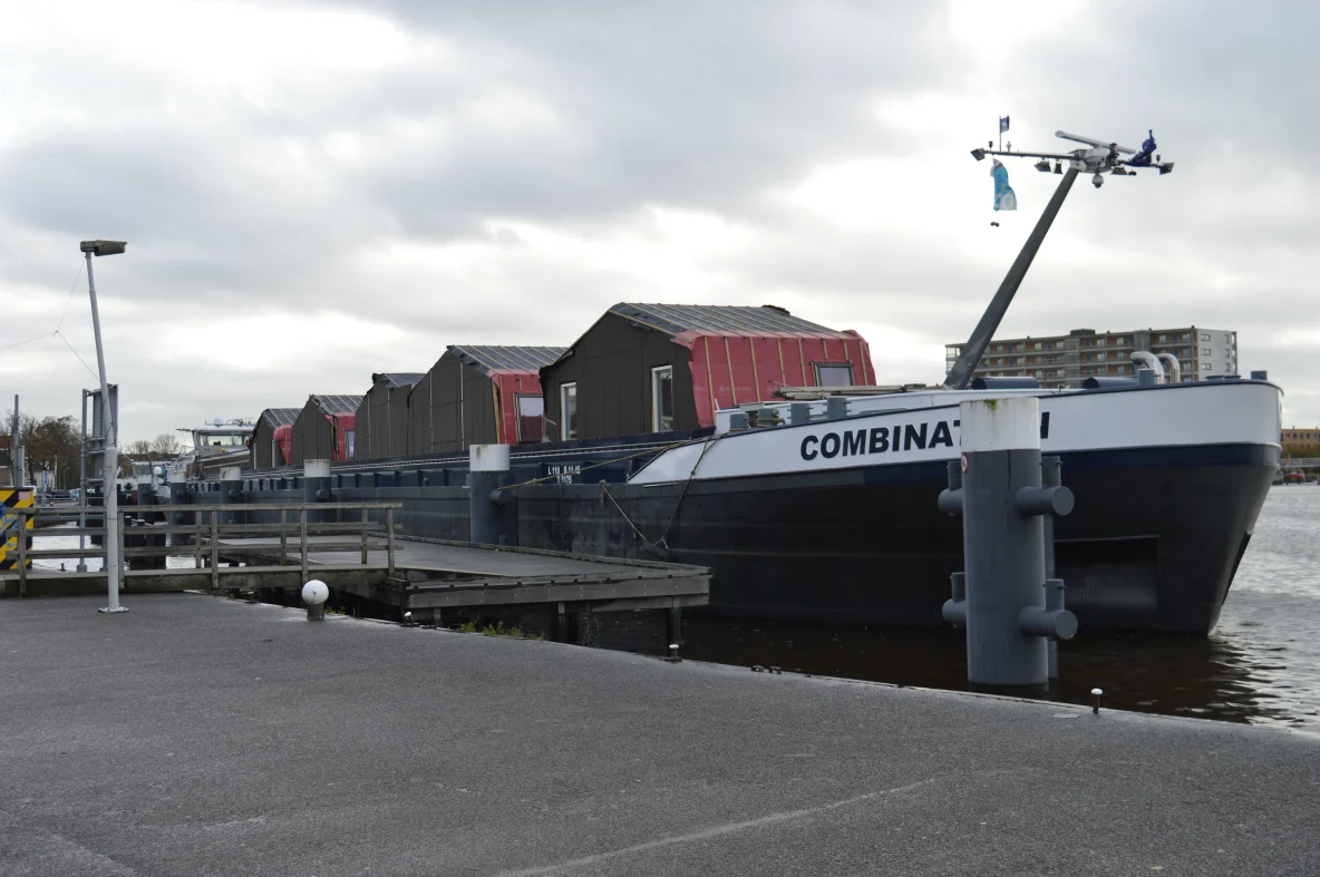 Gisteren zag ik de boot met huizen in de Voorzaan liggen en nu weet ik waarvoor die huizen gebruikt worden, ze worden geplaatst in de Rosmolen buurt