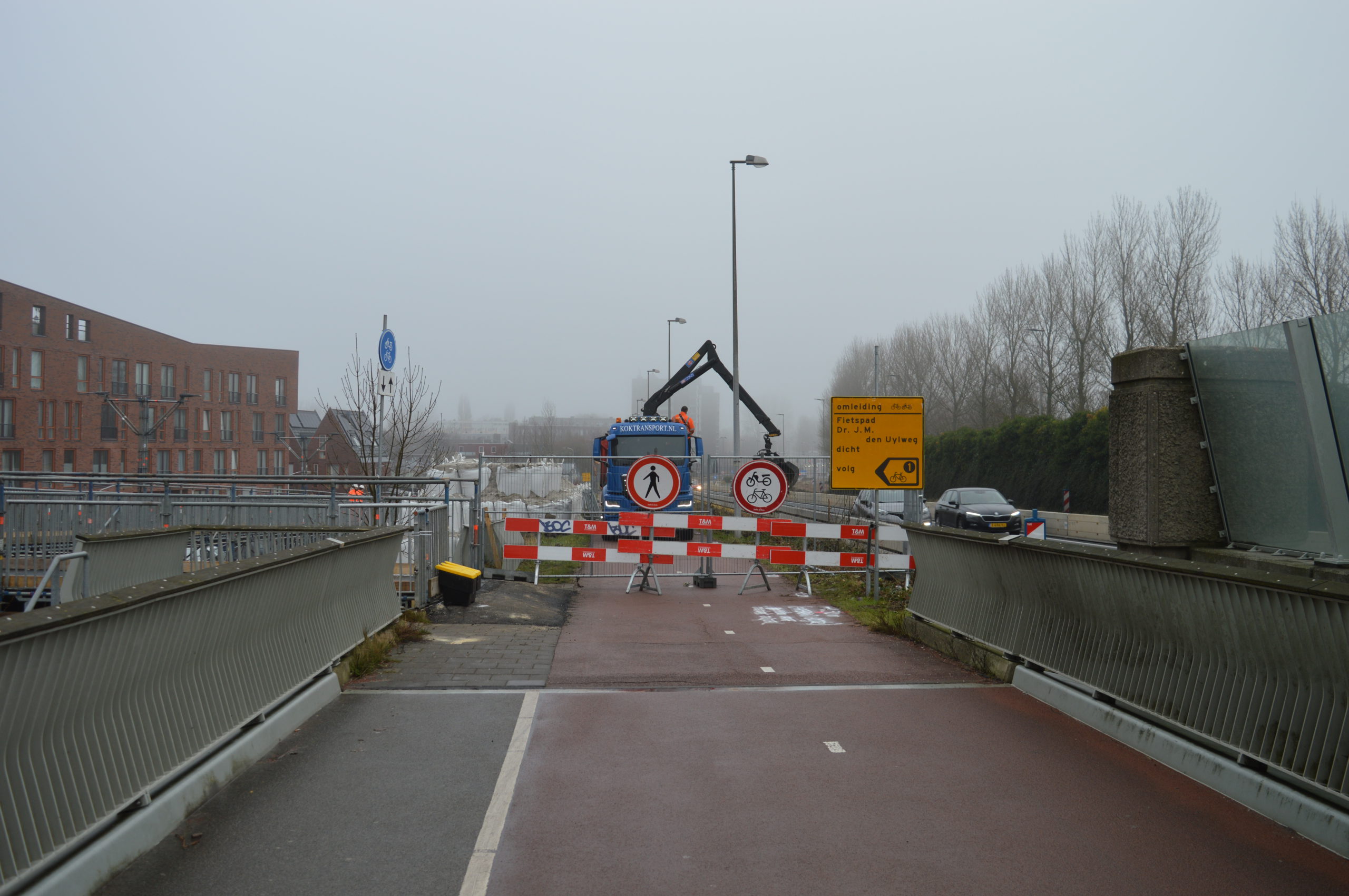 Het stukje fietspad langs de Den Uylbrug is vandaag afgesloten en de werkzaamheden aan de Thorbeckewerg/Wibautstraat kunnen nu echt beginnen