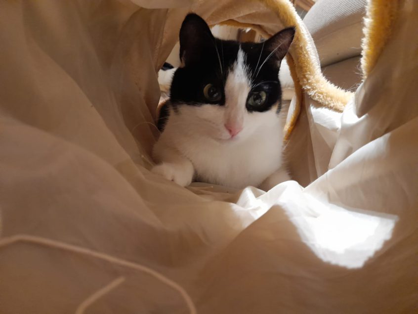 Dit is toch wel de beste plek om met Kedi te spelen, Ze kan hier net doen alsof de prooi haar niet ziet en dan in ene…, sprint ze naar buiten om de nep prooi te pakken