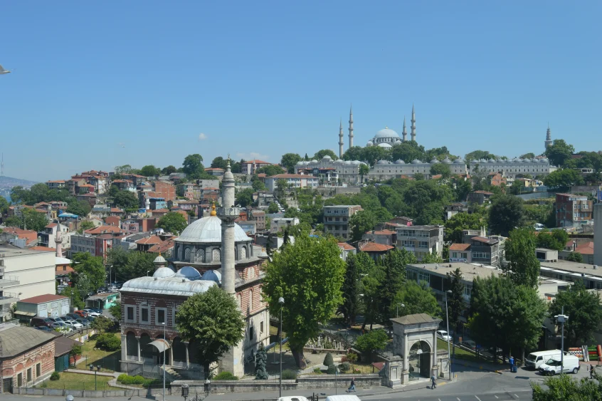 Het uitzicht vanaf de top van de hevel waar de Molla Zeyrek moskee staat