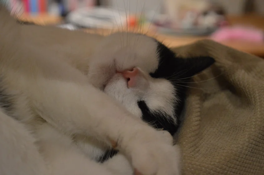 Ik begin Kedi steeds meer te begrijpen, ze heeft 3 belangrijke hobby’s en dit zijn ze, in willekeurige volgorde. Eten, slapen en zoveel mogelijk grint uit de kattenbak gooien nadat ze haar behoefte heeft gedaan. Hier ligt ze te slapen nadat ze de etensbak compleet heeft leeg gegeten en daarna de kattenbak korrels door de hele keuken heeft verspreid