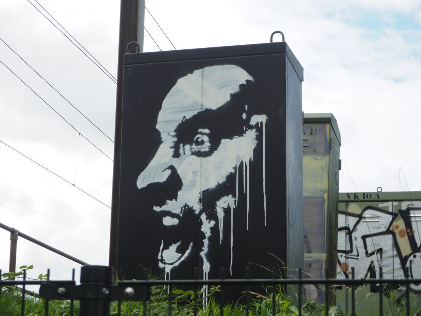 Fietspad: Dank zij een tip heb ik weer een nieuw werk gevonden van de kunstenaar zonder naam. Dit werk is te vinden op het fietspad van het veldpark naar Kogerveld en dan bij het viaduct van de Hoornselijn