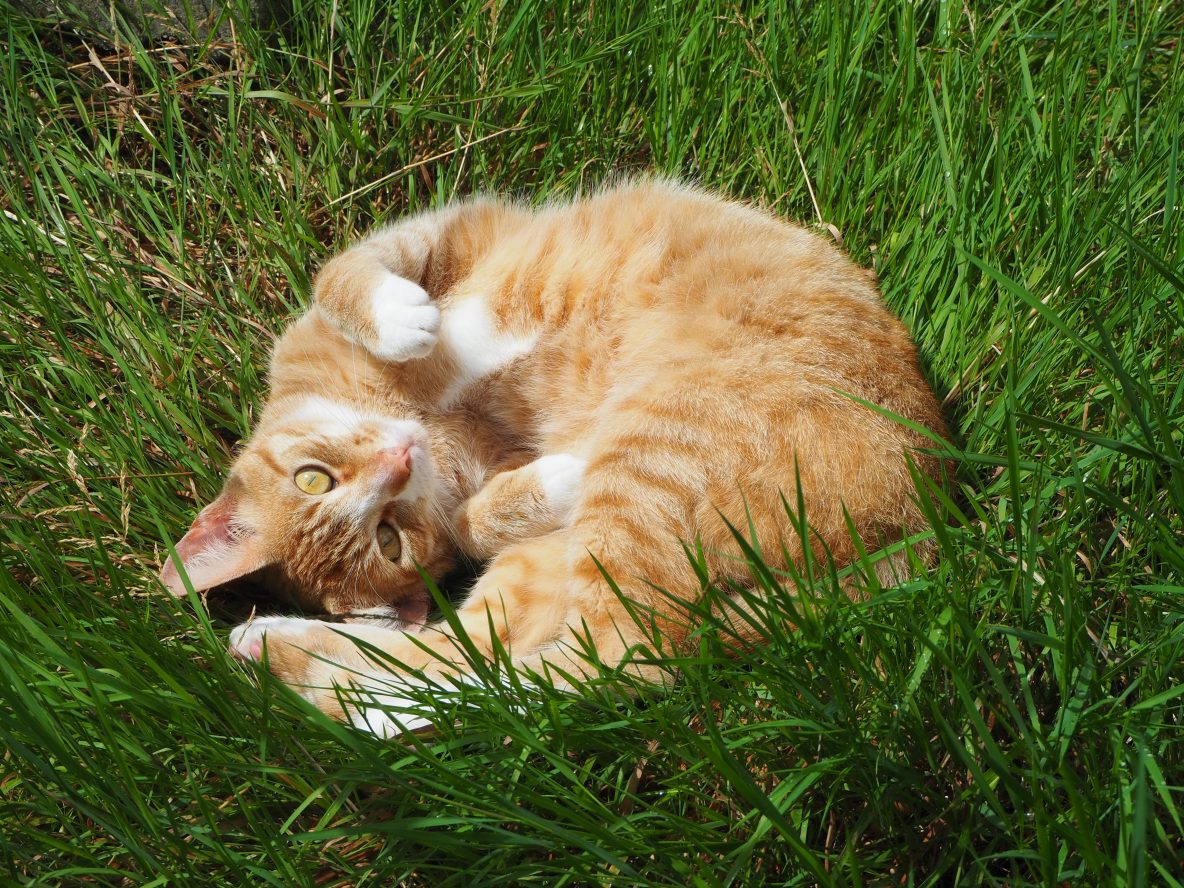 Achtertuin: Jimmy, het katertje van bijna één jaar oud, had weer zin om te spelen…