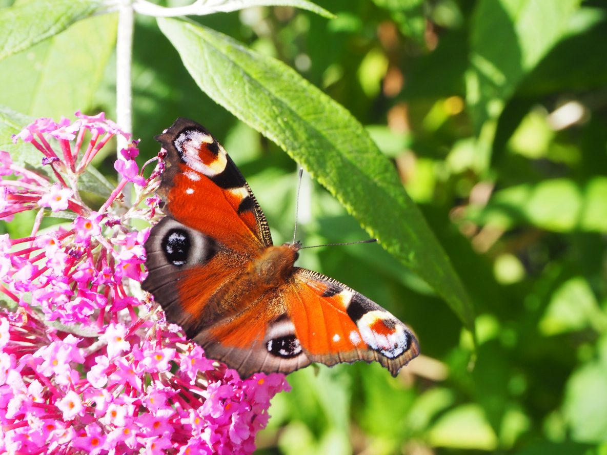 Achtertuin: De vlinders beginnen nu los te gaan op de Vlinderboom