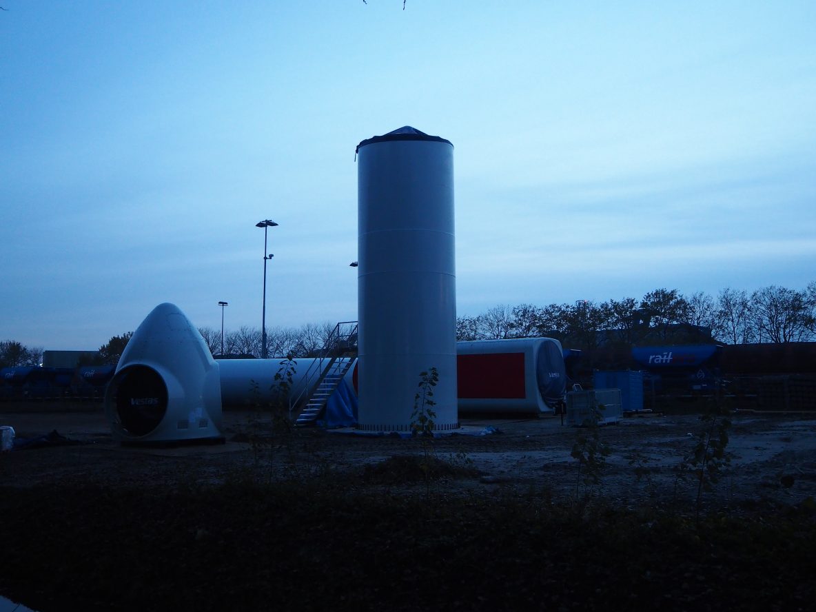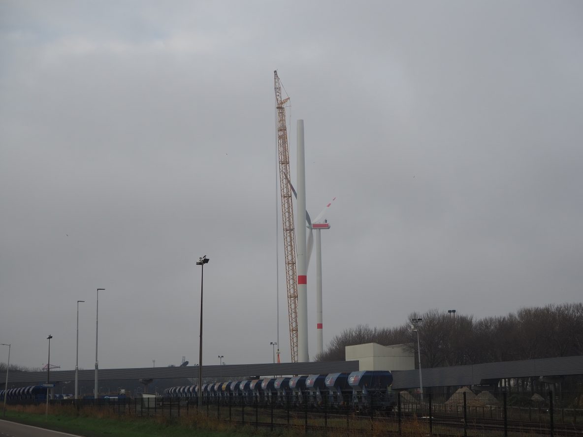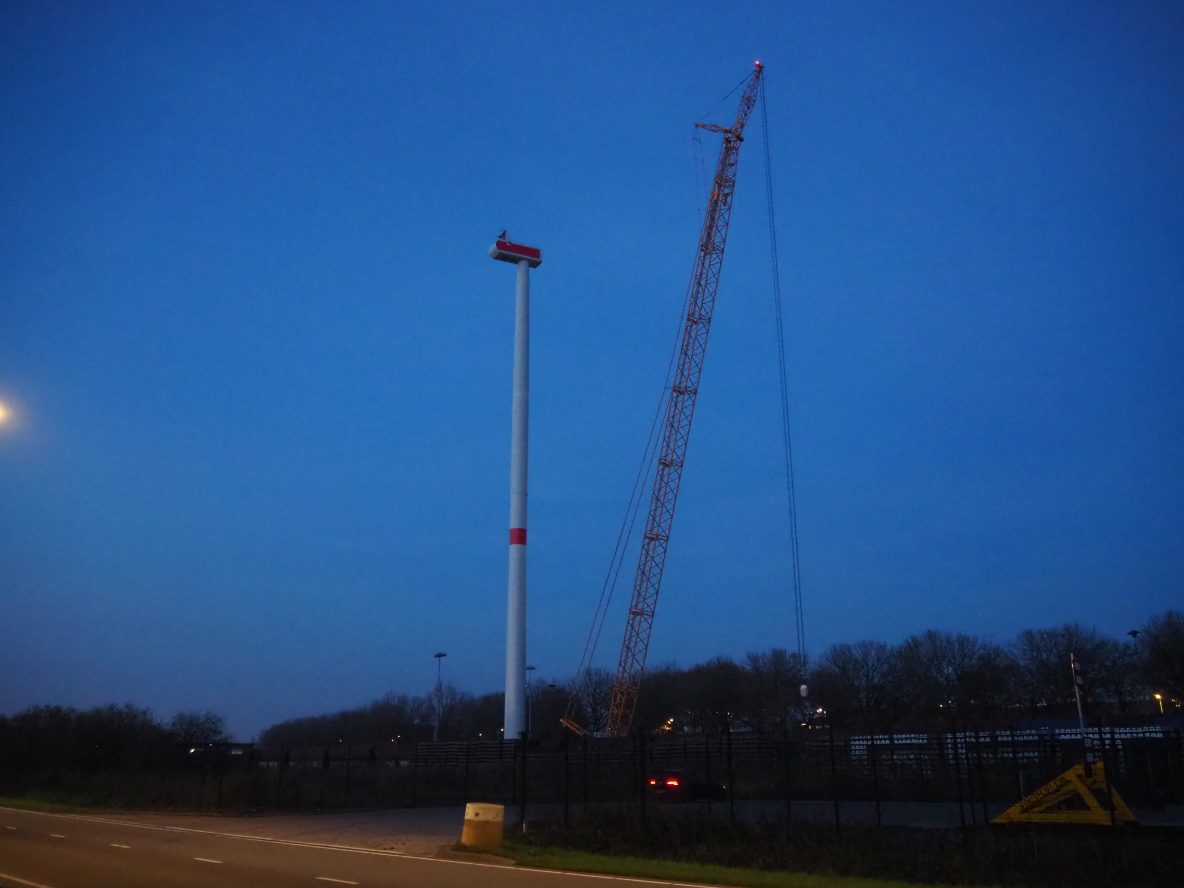 Westhavenweg: De windmolens bij de Nieuwe Hemweg worden in elkaar gezet