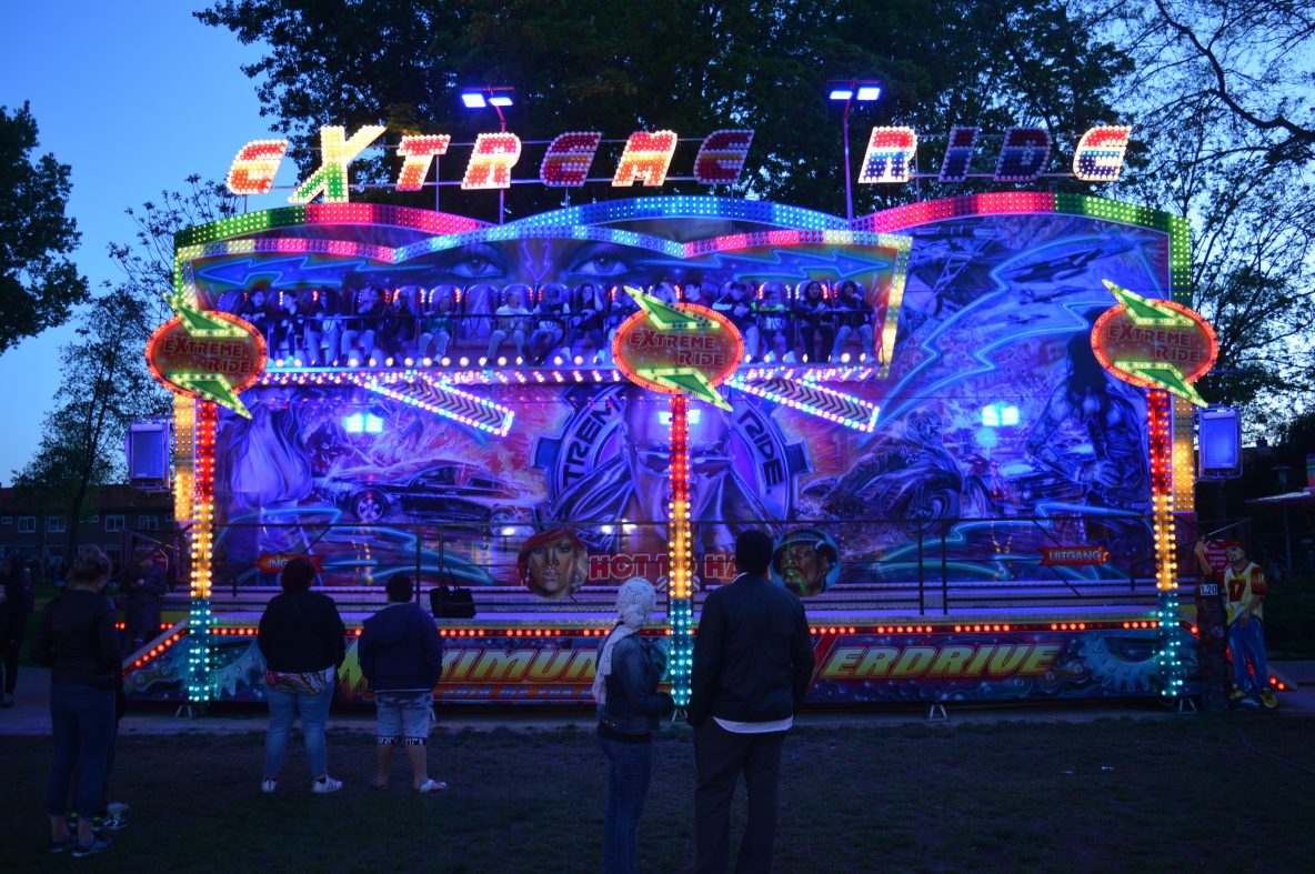 Burg. In ’t Veldpark: Eigenlijk was het nog even te vroeg voor mooie avond foto’s op een verlichte kermis