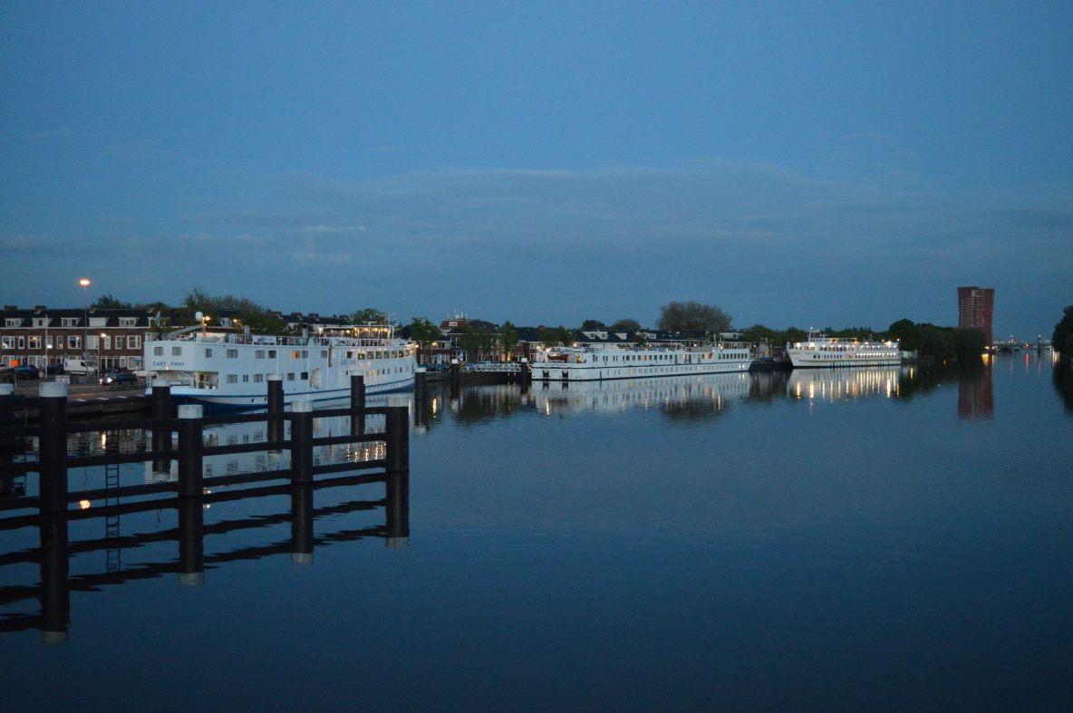 Wilhelminabrug: Vanmiddag kwam ik een boot tegen op de Havenstraat en nu lagen er nog steeds 4, waarvan 3 aan de Prins Hendrikkade en Burcht