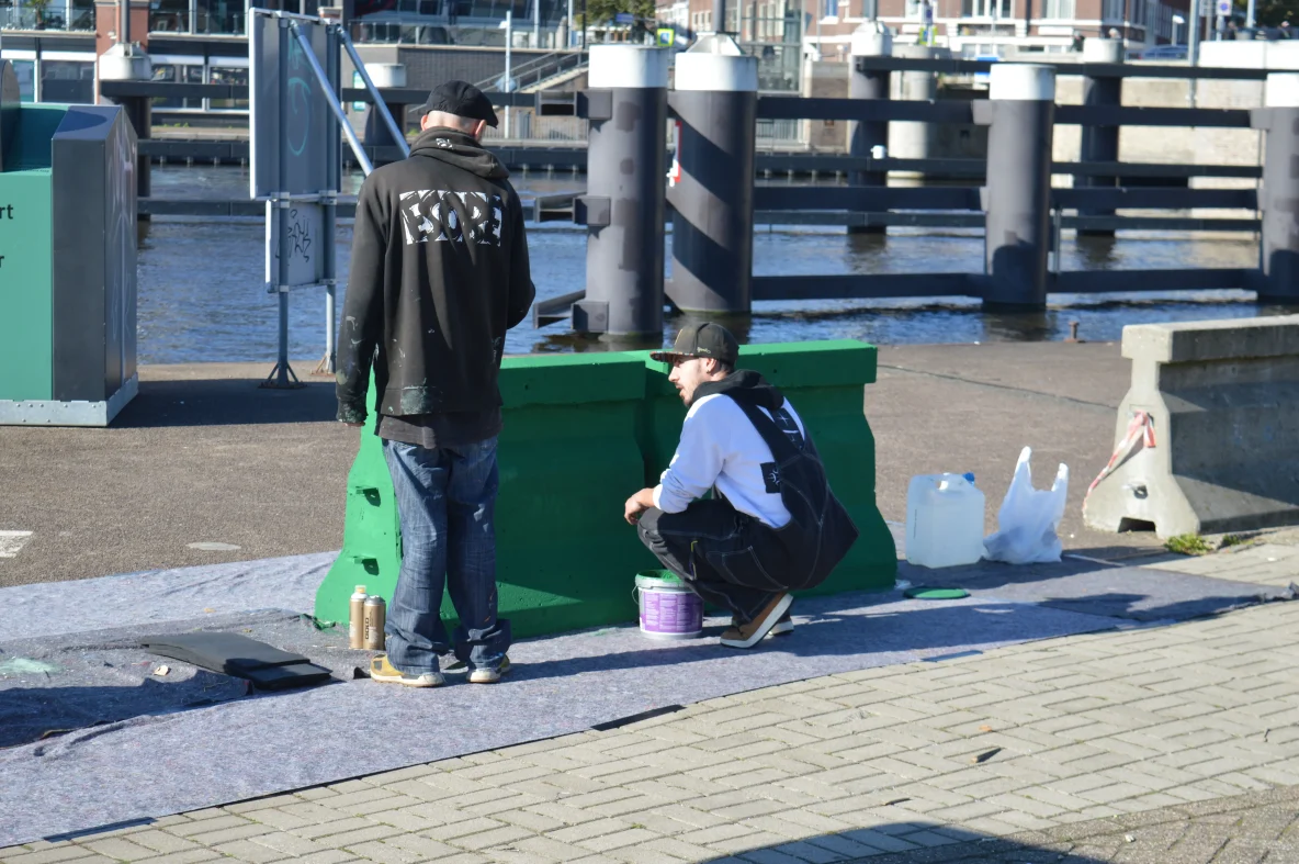 Burcht: Op de burcht worden een aantal betonblokken beschilderd door BC.Esobe en hij wordt geholpen door een aantal kinderen