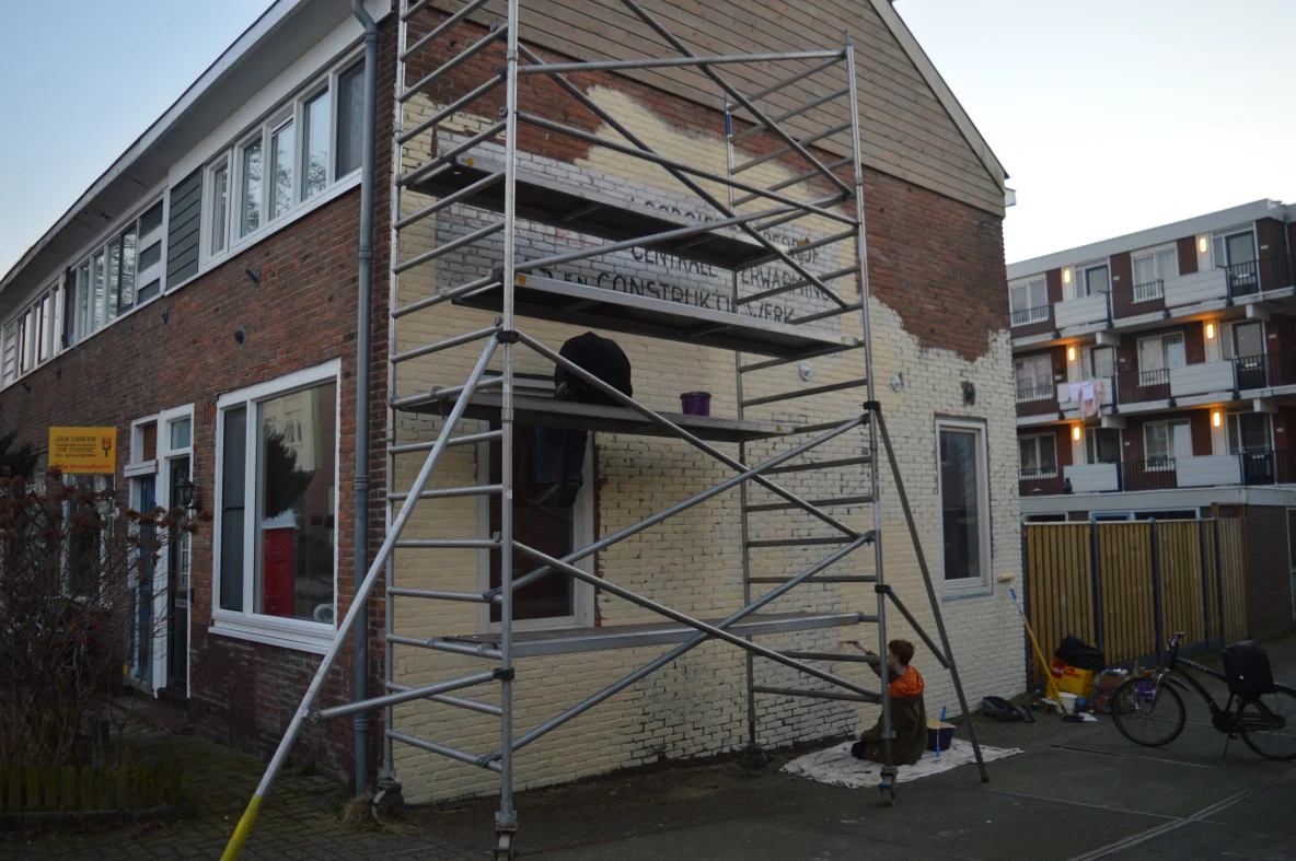 Vandaag zou het nieuwe kunstwerk van B.C. Esobe klaar zijn op de Jonge Arnoldusstraat klaar zijn. Helaas was ik nog te vroeg