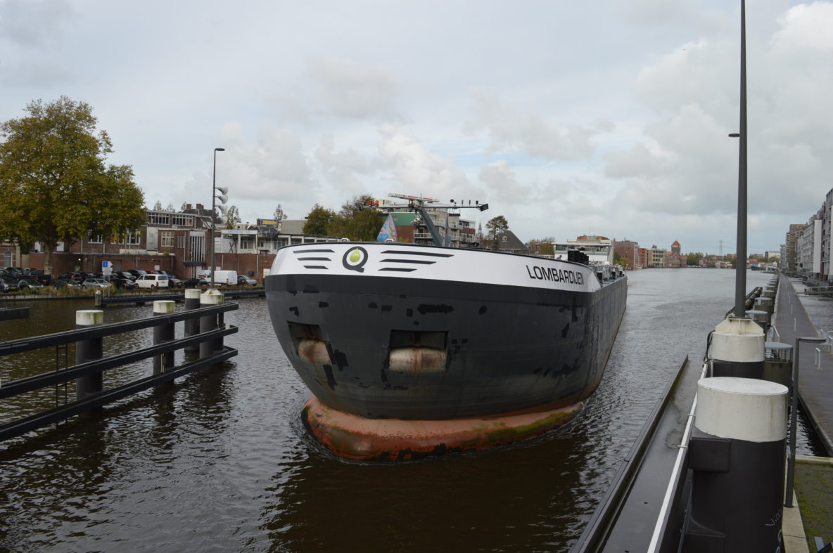 Het blijft altijd imposant om te zien hoe zo’n schip de sluis in vaart