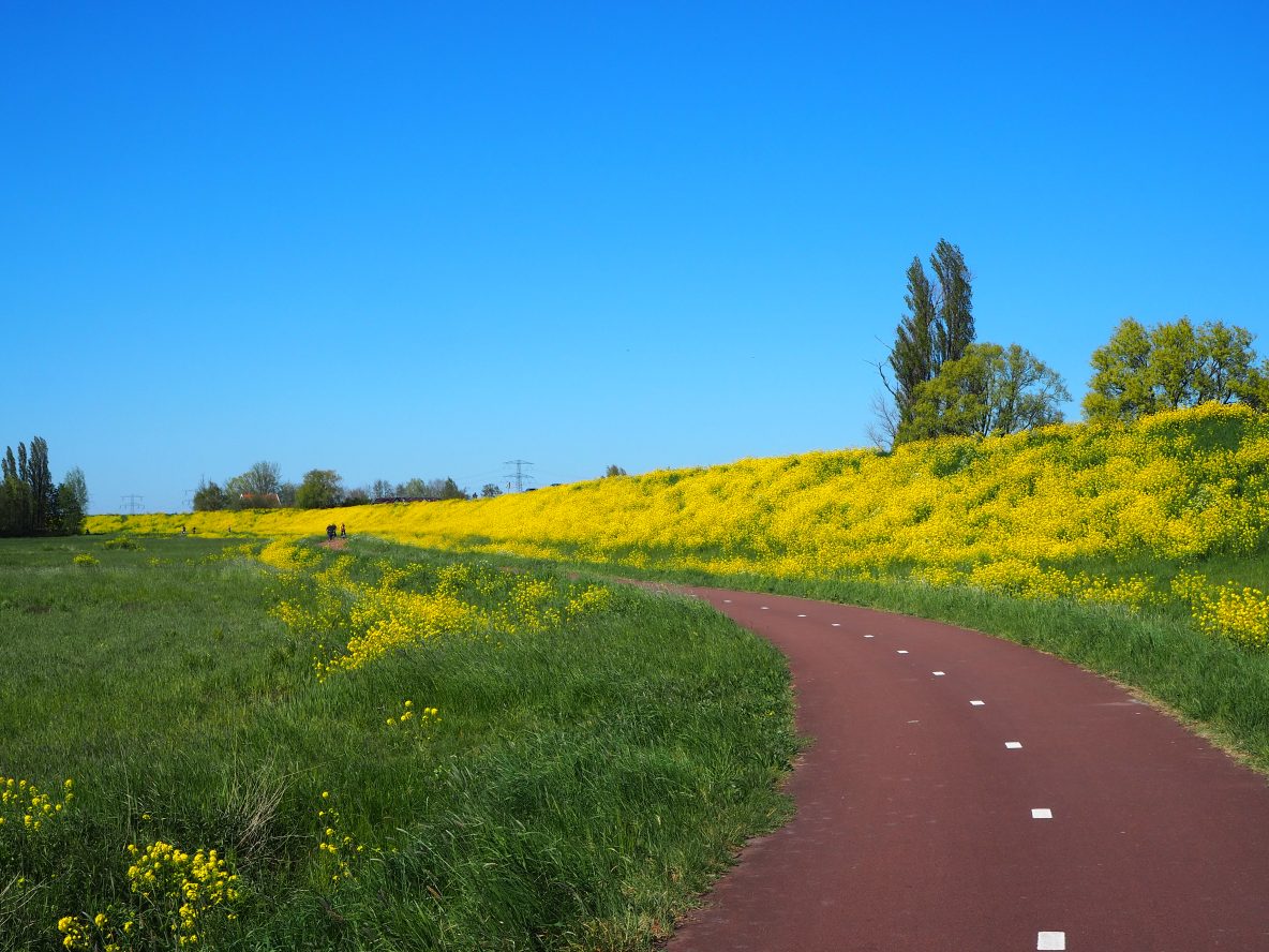 Veldweg: De overtoom staat vol met, wat ik denk, Jacobskruid. Maar omdat er een paard middenin staat weet ik dat niet zeker