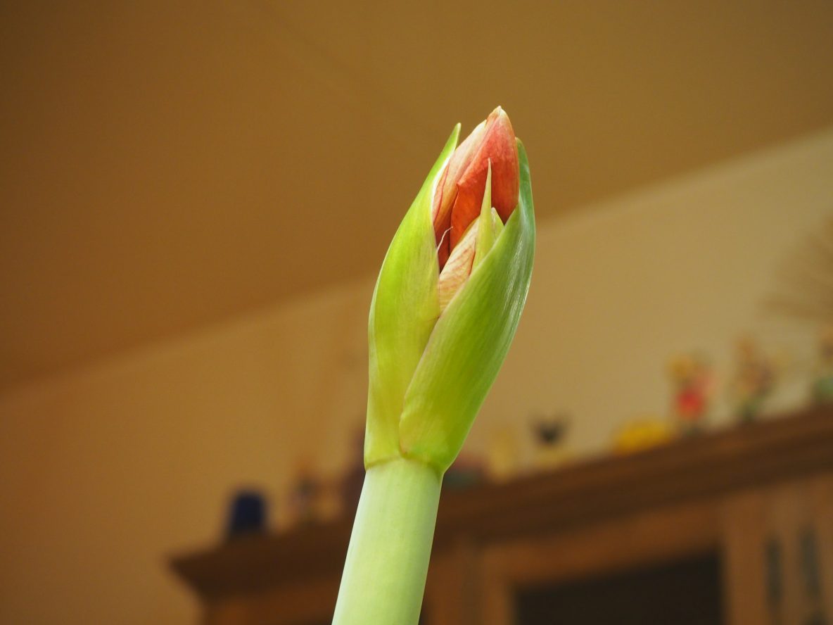 De Amaryllis komt tot bloei. Het lijkt er op dat het een vijfling wordt