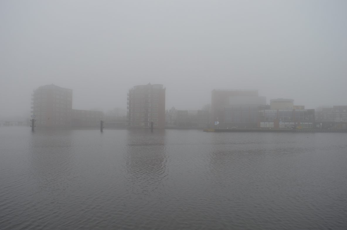 Burcht: Op deze mistige morgen een blik op Hoge horn en het Zaantheater