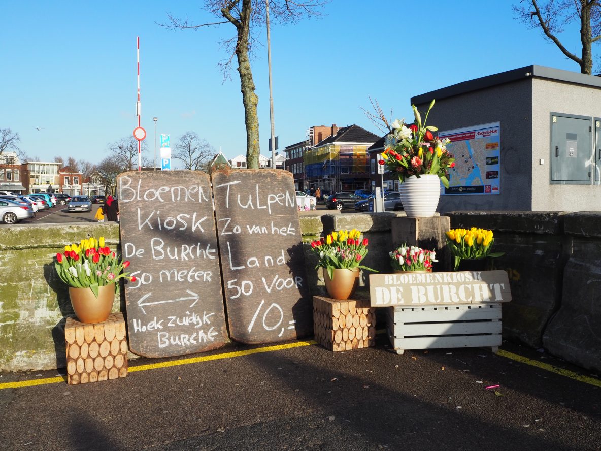 Burcht: De bloemenstal op de Burcht maakt reclame bij de pontonbrug