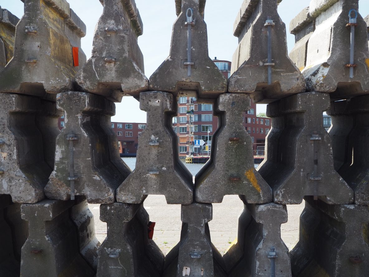 Burcht: Een beetje kunst, de laatste blokken beton die bij de pontonbrug stonden