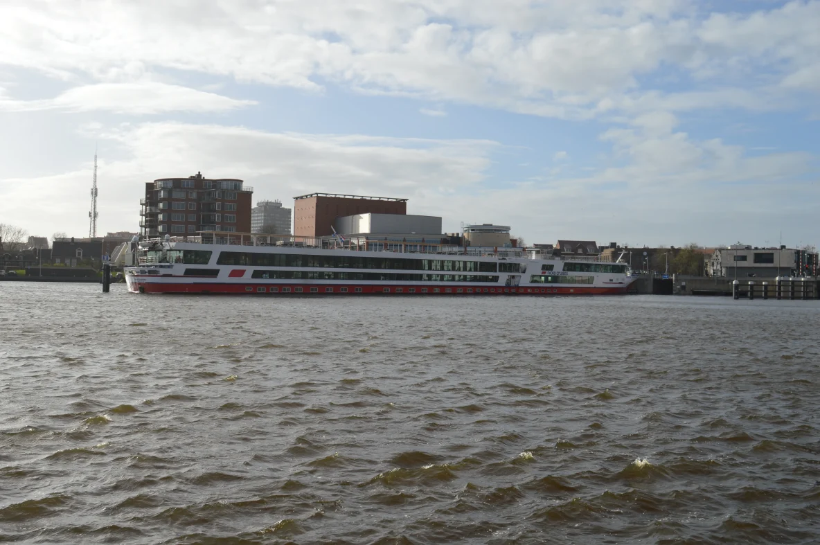 Wilhelminastraat: De River Discovery II van Vantage travel