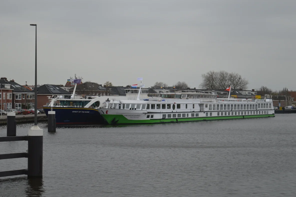 Wilhelminabrug: Het lijkt erop dat het cruise seizoen weer is begonnen, twee schepen van Gate 1 travel liggen in de Voorzaan