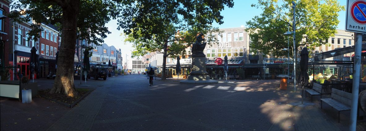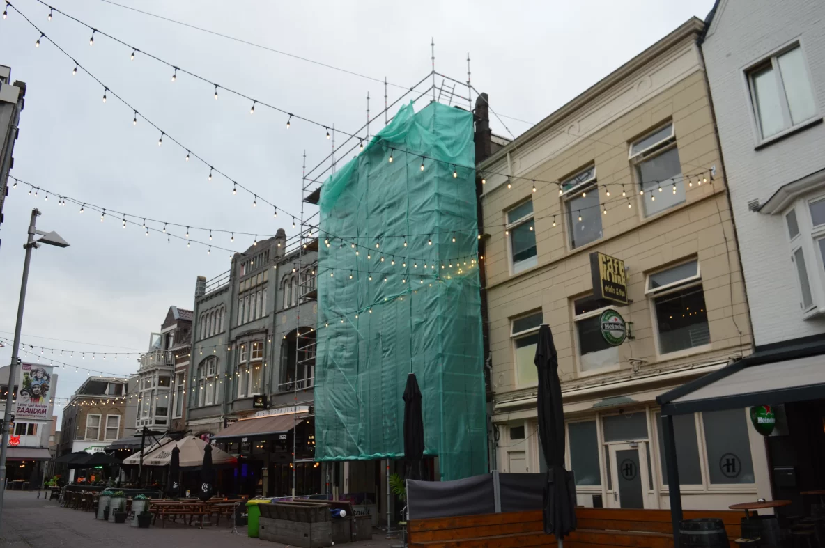 Nicolaasstraat: Nu de kroegen weer open mogen staat de dam vol met tafeltjes en stoeltjes