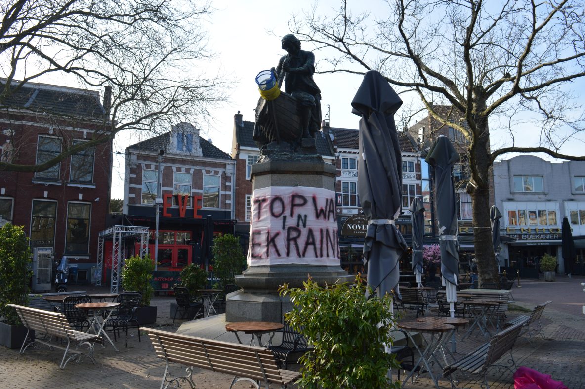 Dam: Het Czaar Peter beeld wordt gebruikt om te protesteren tegen de oorlog in de Oekraine