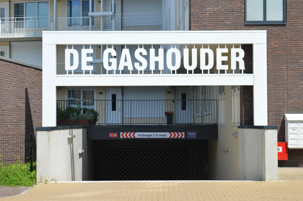 Westzijde: Het bord Westzijde is de gashouder geworden