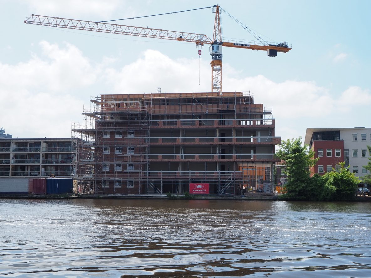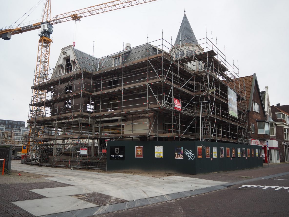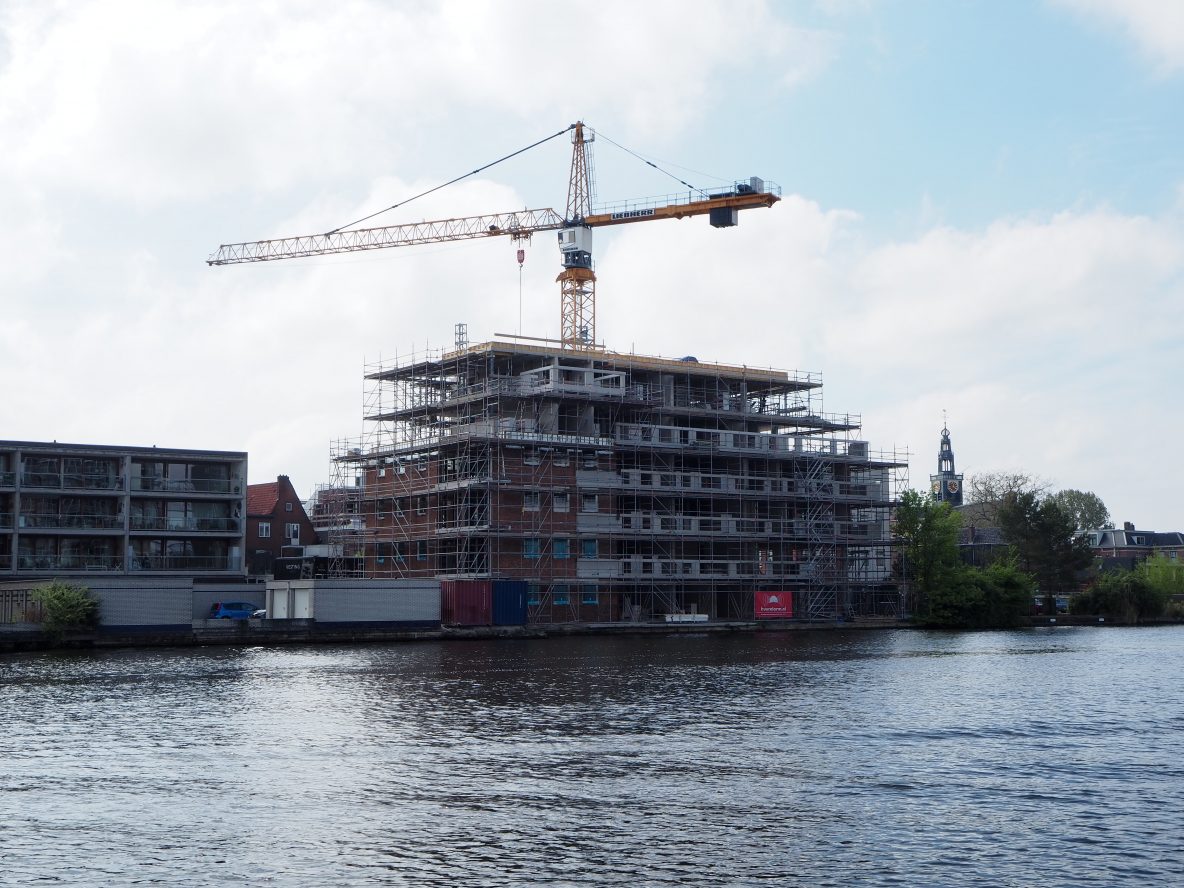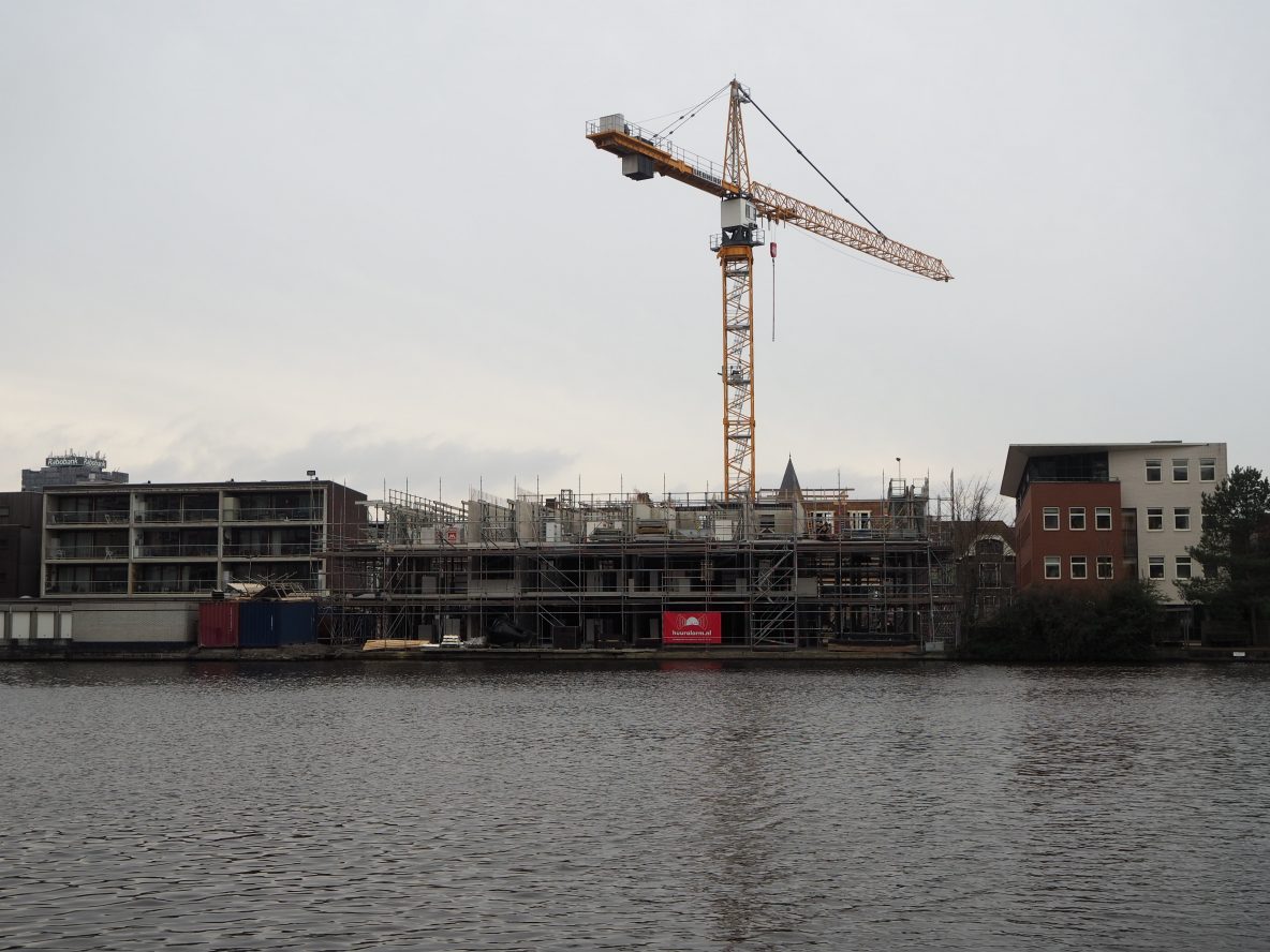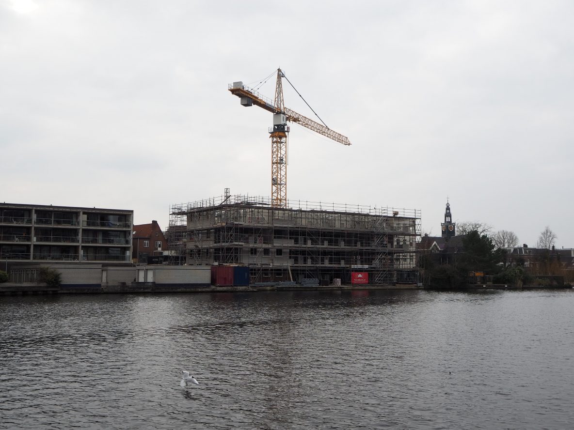 Westzijde: de kraan van het nieuwbouw project de Pauw torent boven de Westzijde uit