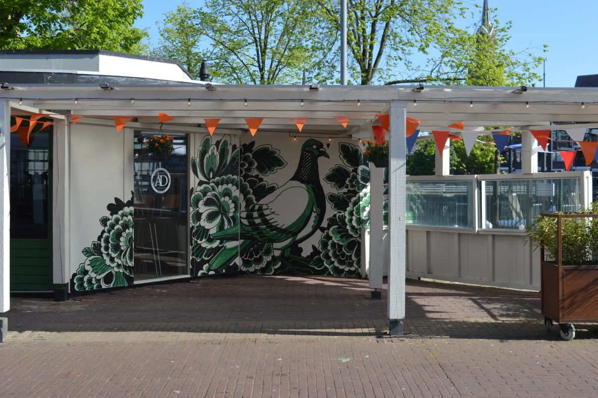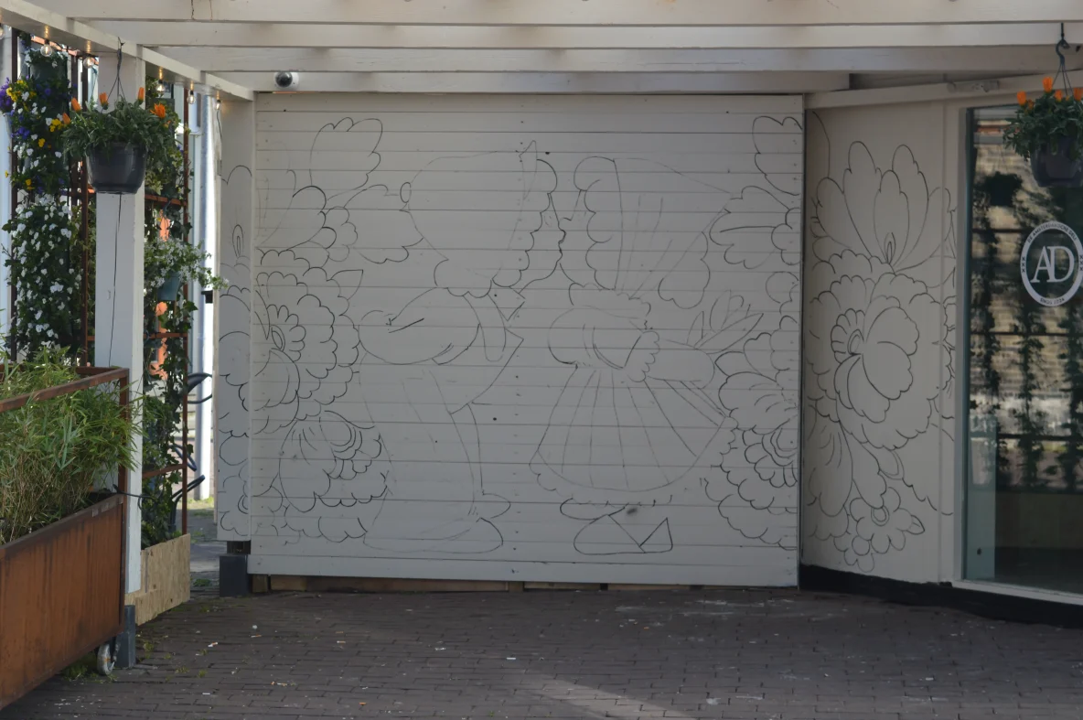 Dam: Ik weet niet of deze schildering bij de Amsterdamsche Deli al klaar is, of nog ingekleurd moet worden
