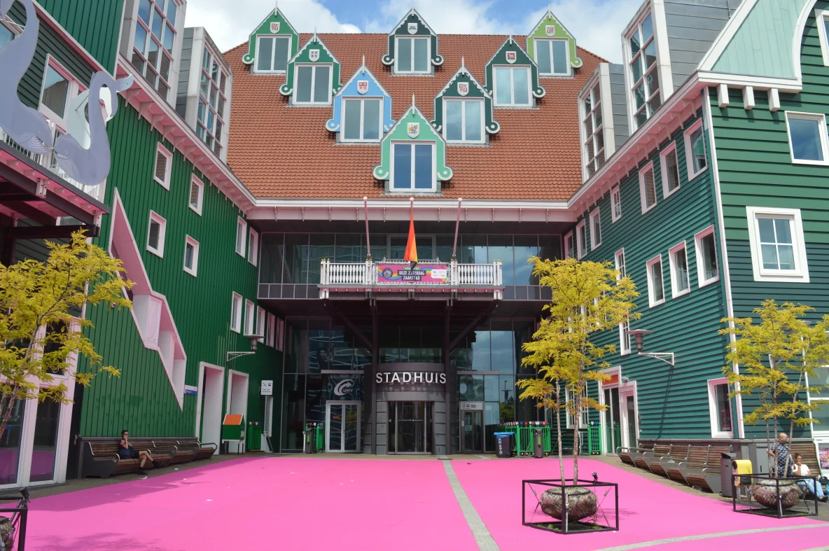 Bij de muziekkoepel en het stadhuis was nog wat “Roze zaterdag” te zien