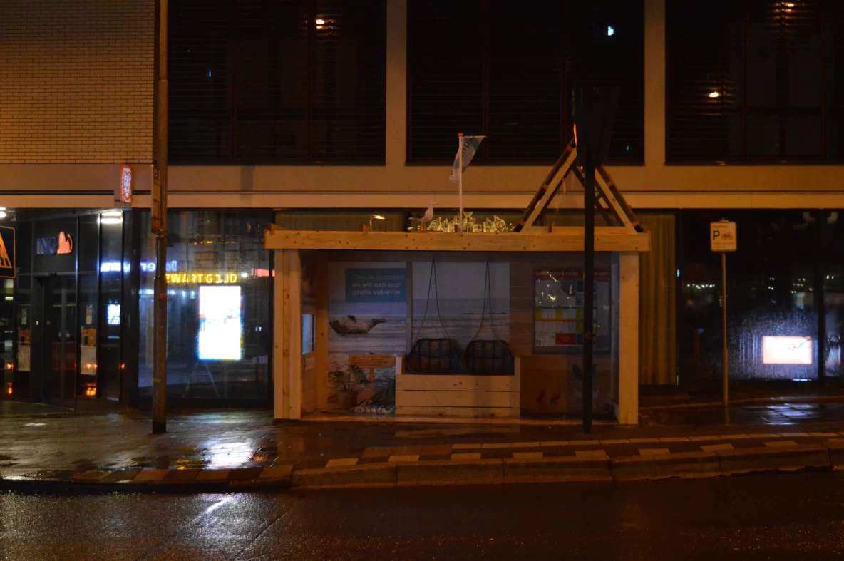 Gedempte gracht: Een bushokje is omgetoverd to vakantiehuisje