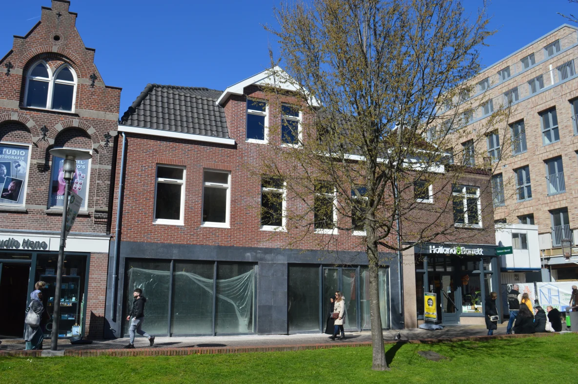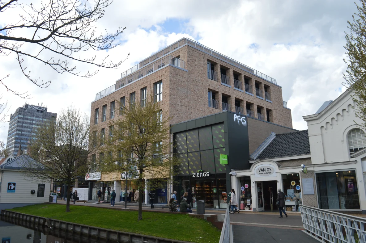Gedempte gracht: Nog even en alleen aan de achterkant van het gebouw is de oude V&D gevel nog te zien