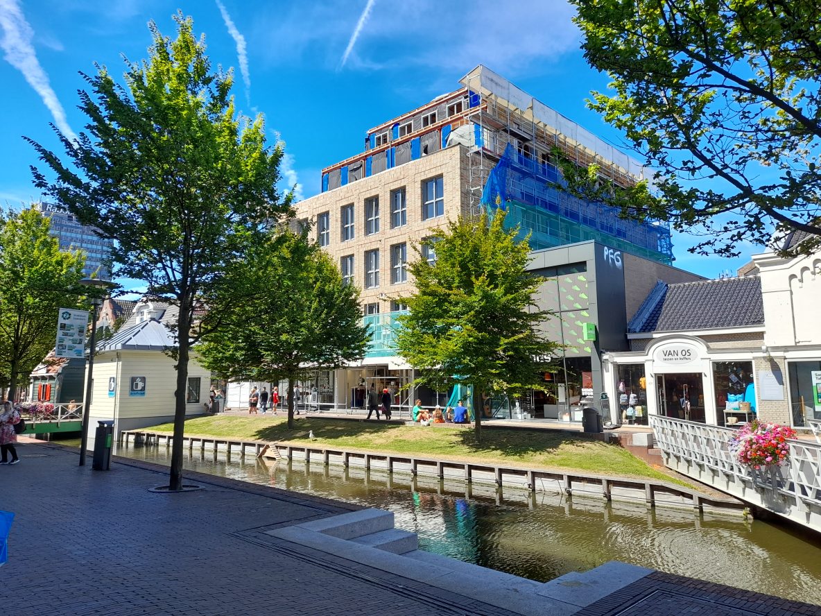 Gedempte gracht: De kozijnen voor de nieuwe appartementen zijn geplaatst