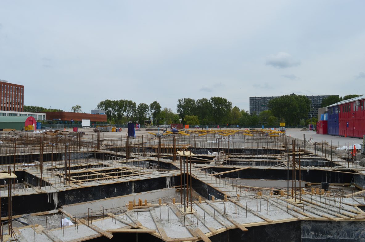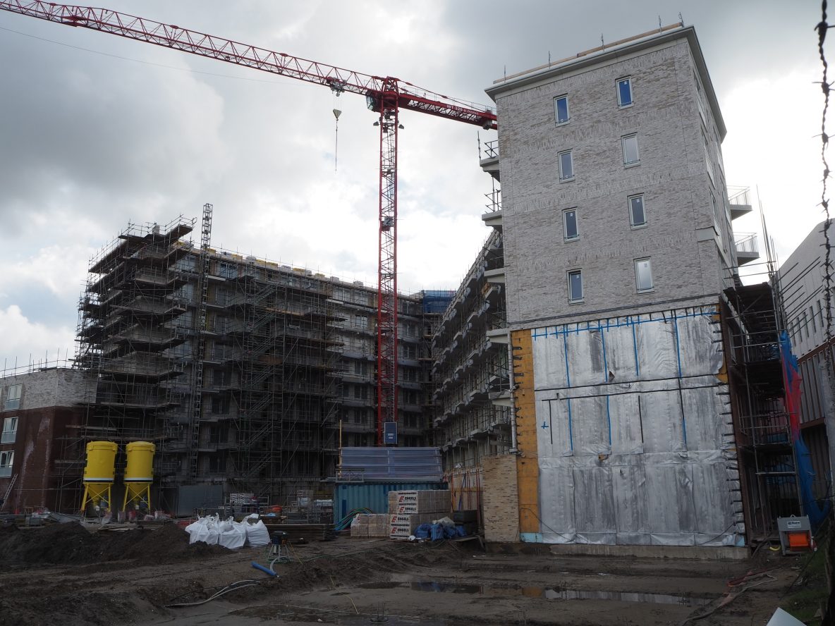 Heijermansstraat: De toren vasn Gouwpark heeft zijn hoogste punt bereikt