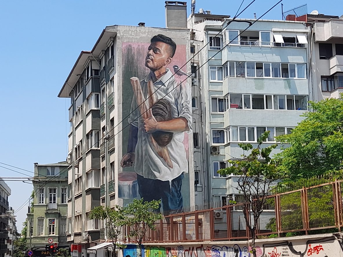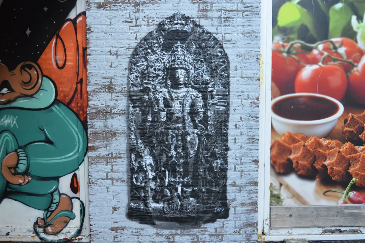 Jonge Arnoldusstraat: Een werk van BC.Esobe en S.Cmart op de Tamarinde school, maar welke vogel (eend) is dit?