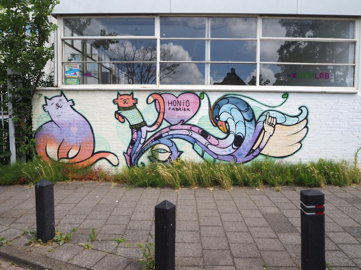 Touwslagerstraat: Aan de achterkant van de drukkerij van Haverlag is dit stukje werk te vinden