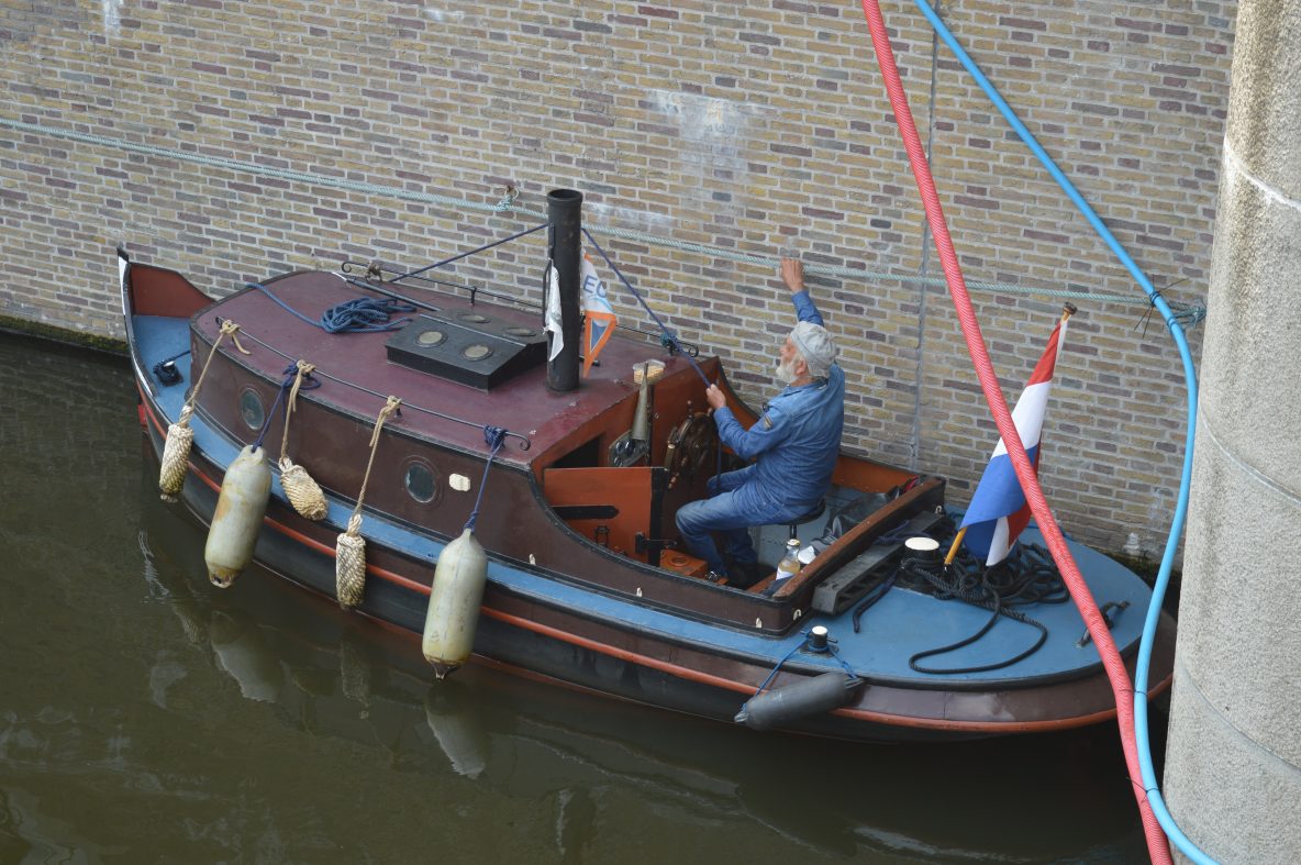 Beatrixbrug: Een heel klein bootje en een boot die nauwelijks past