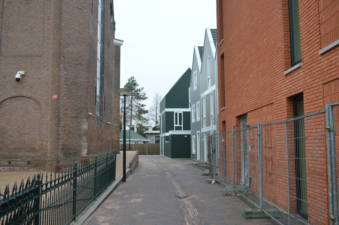 Hazepad: De achterkant van de Maartenkerk. Op het braakliggende land komt Hazeleger