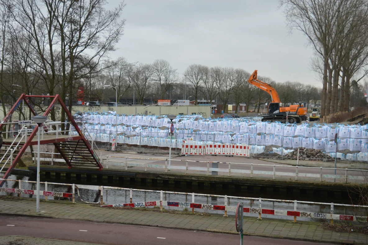 Zwanenbloemkade: Het achterste deel van het Hoornseveld is bijna leeg en zwembad de Slag kan hier gebouwd worden