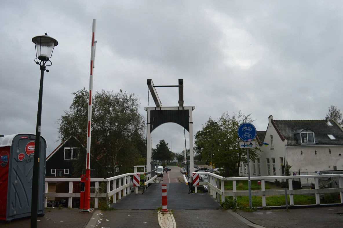 De brug bij de oude haven heeft slagbomen gekregen. Waarschijnlijk gaat de brug veel gebruikt worden bij de bouw van de Houthavenkade
