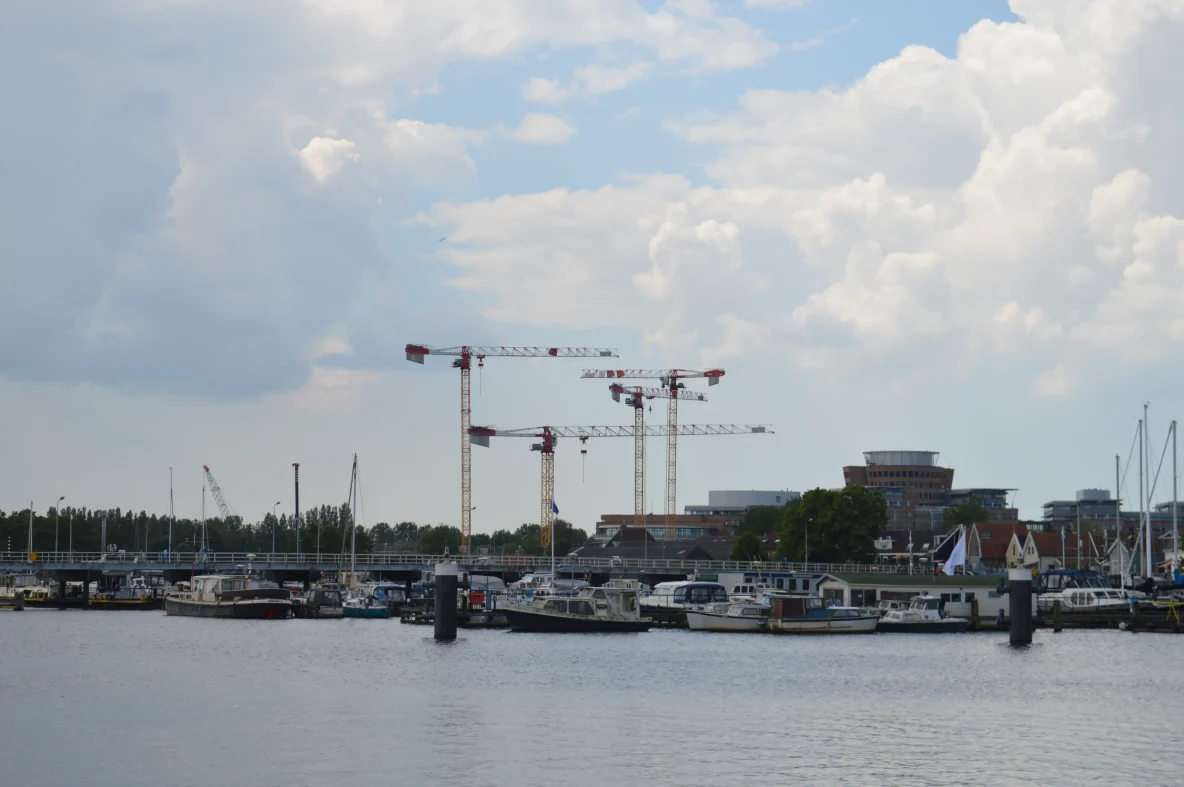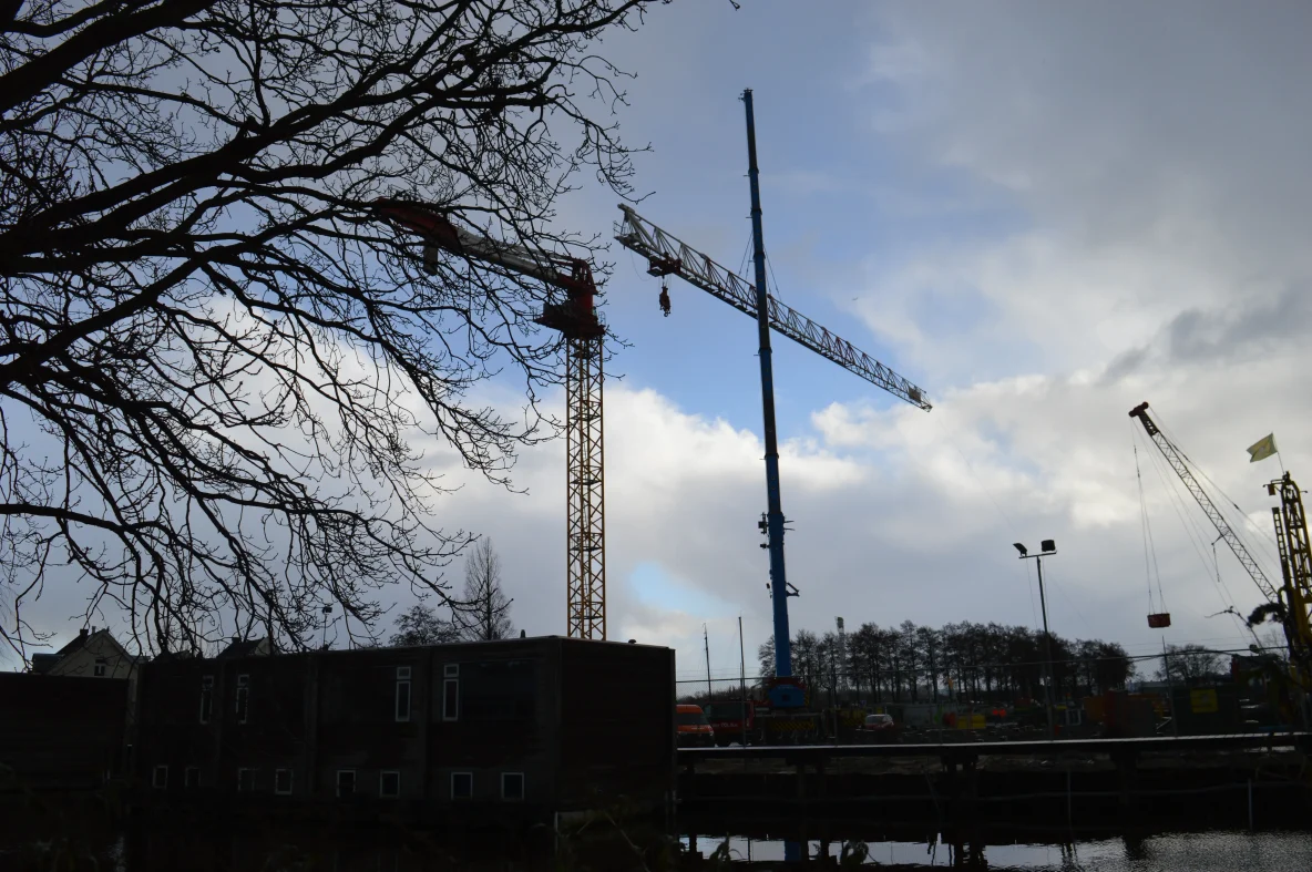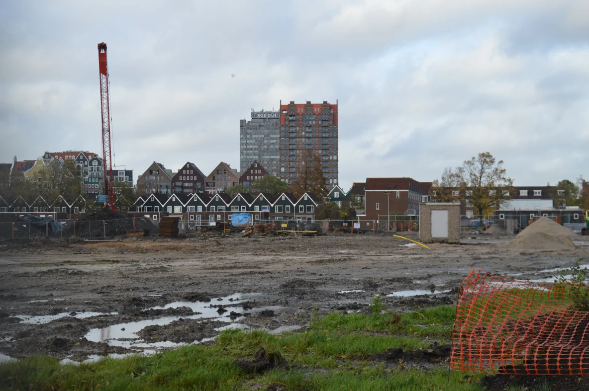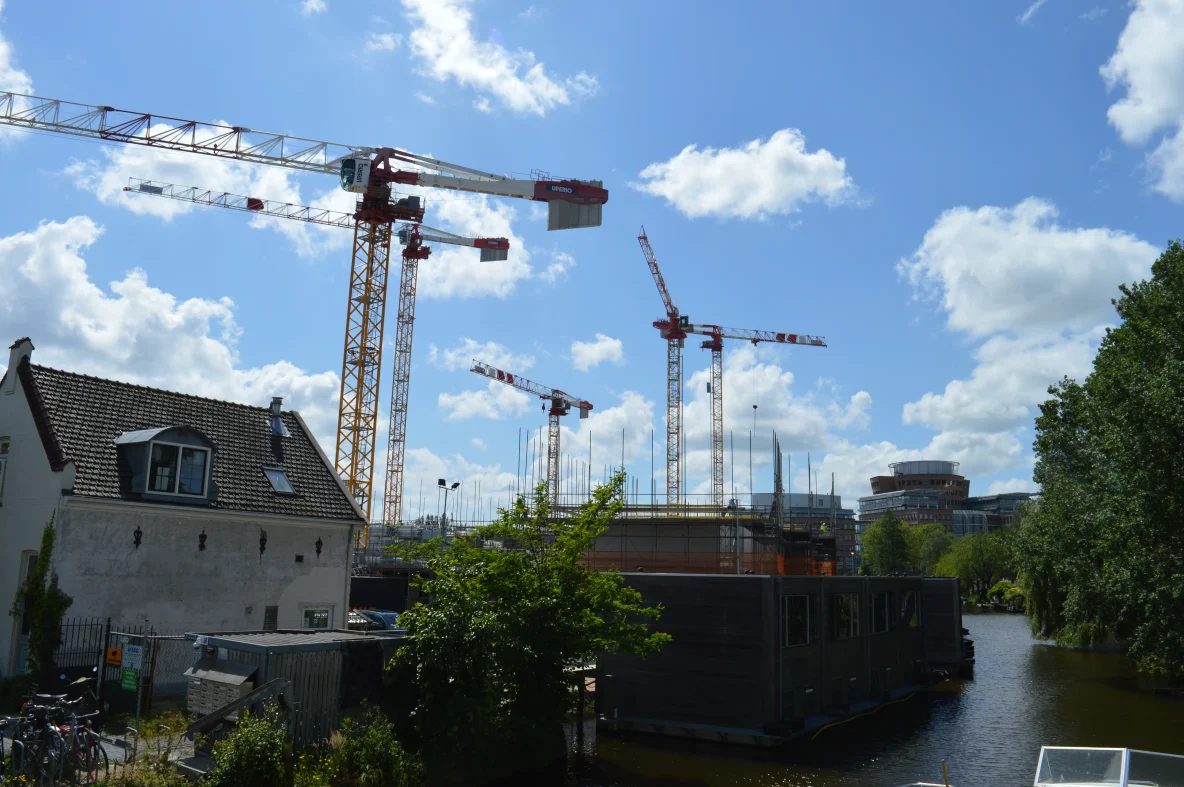 De bouw komt boven de woonboten uit