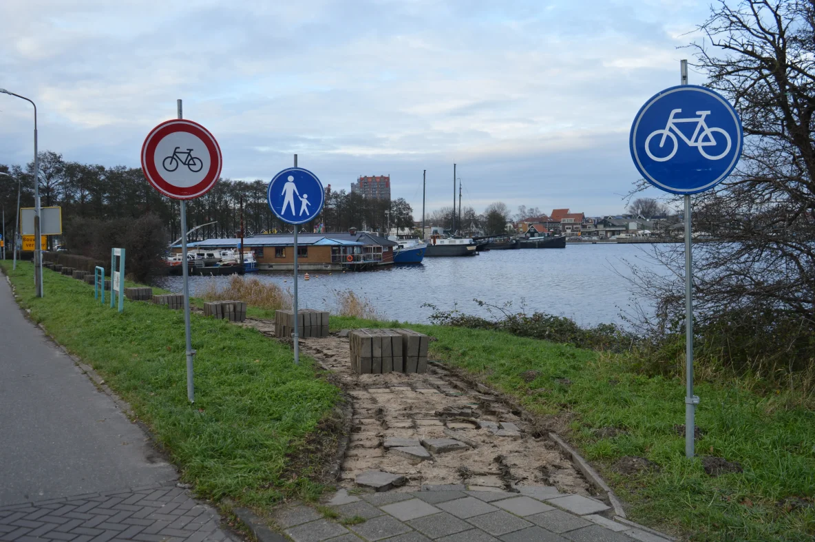 Houthavenkade: Mag je hier nu wel of niet fietsen? (Er komt hier een tijdelijk fietspad, denk ik)