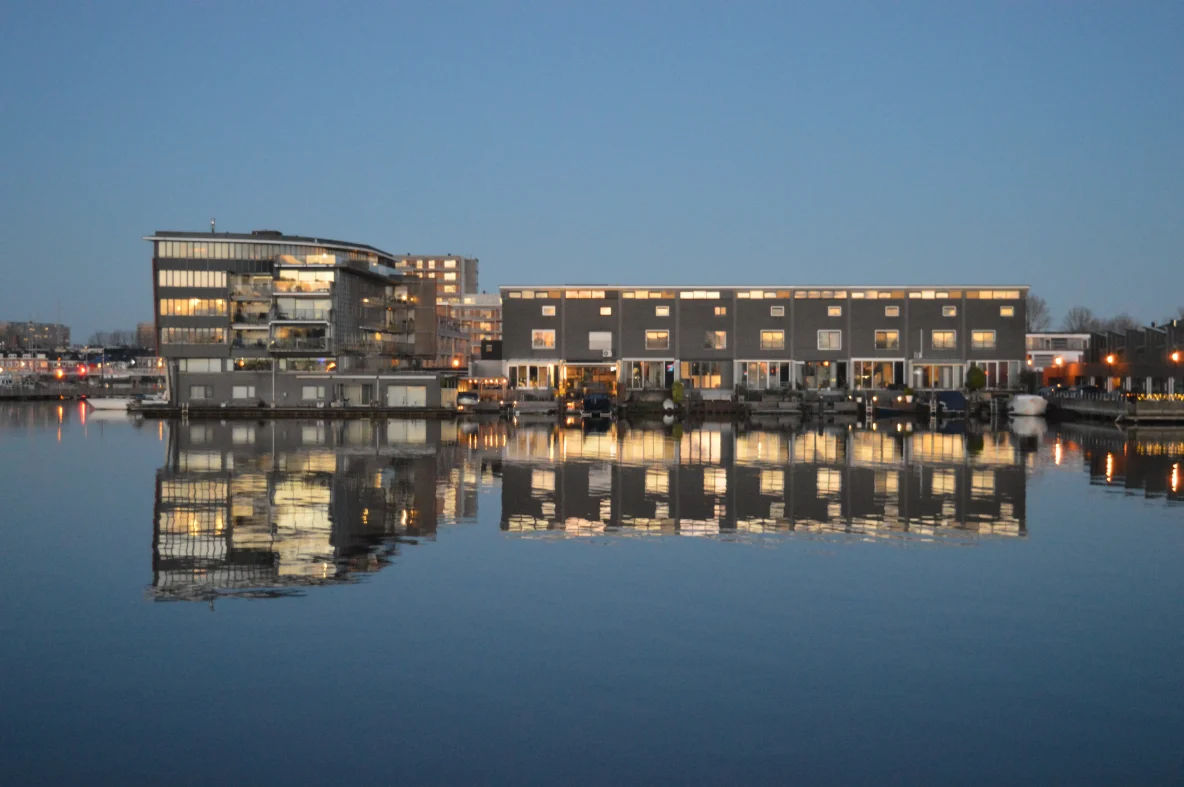 Houthavenkade: Het water was niet stil genoeg om de foto om te keren