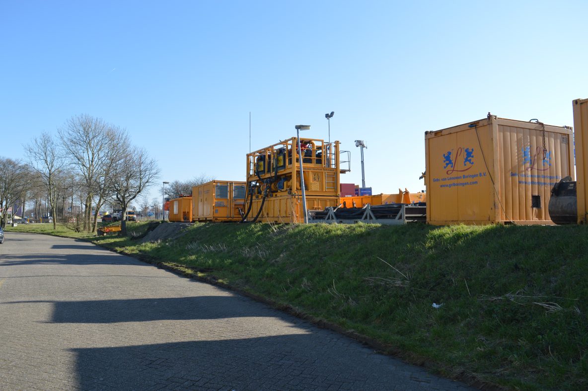 Houthavenkade: Al deze machines zijn nodig om een gat te boren onder de provinciale weg
