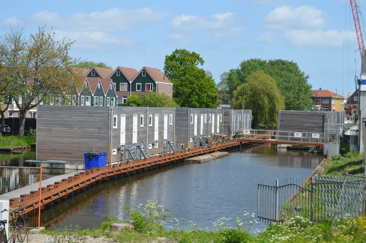 Houthavenkade: De voorbereidende werkzaamheden van plan Houthavenkade. Als eerste gaan de woonboten weg en daarna worden damwanden geslagen