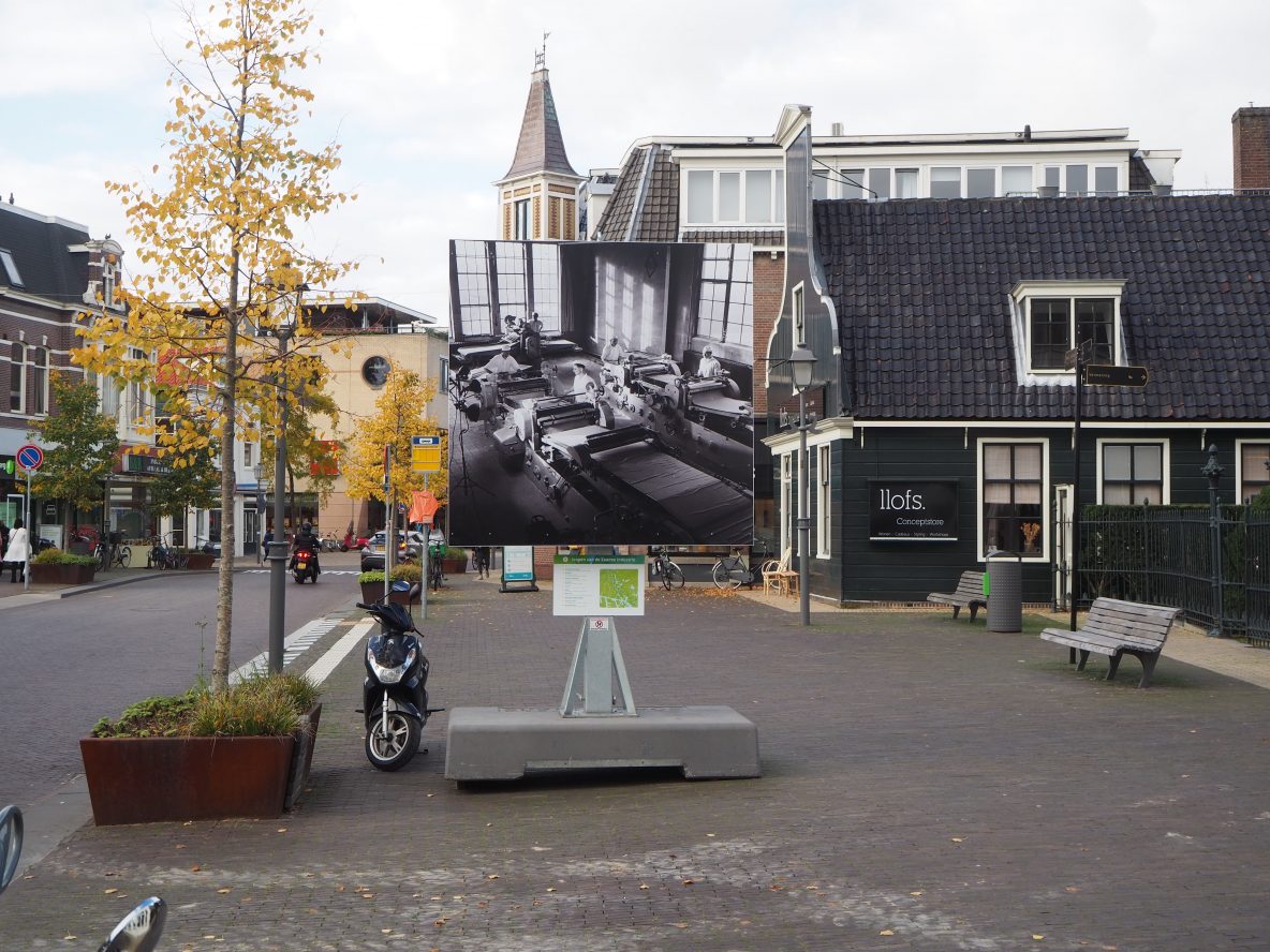 Nicolaasstraat: Door de hele Zaanstreek zijn borden geplaatst met oude beelden van het oude indusstriele verleden