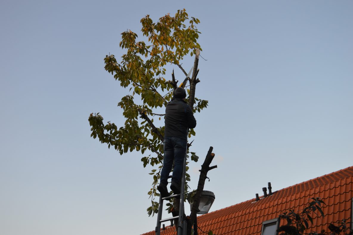 Achtertuin: De kersenboom wordt een beetje terug gesnoeid