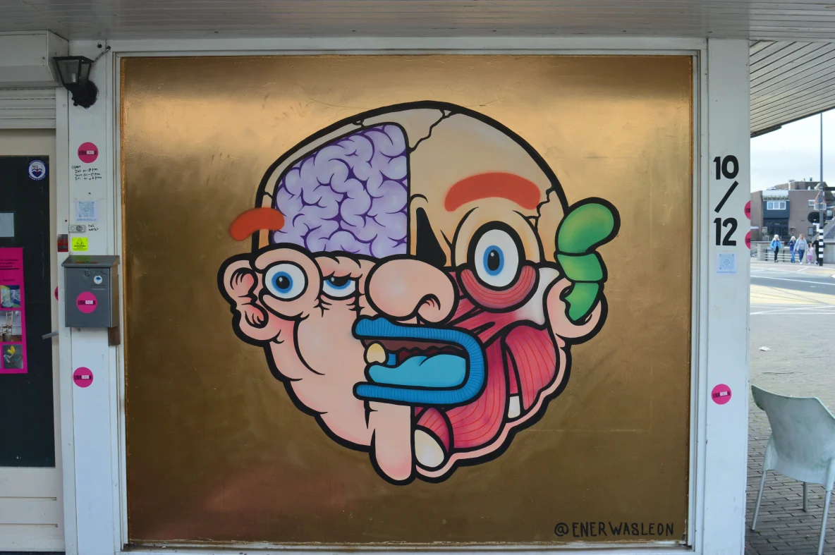 Een mooi stuk grafitti op het paviljoen waar Kinga Wiezcorek haar atelier heeft. Dit werk is van Ener Wasleon