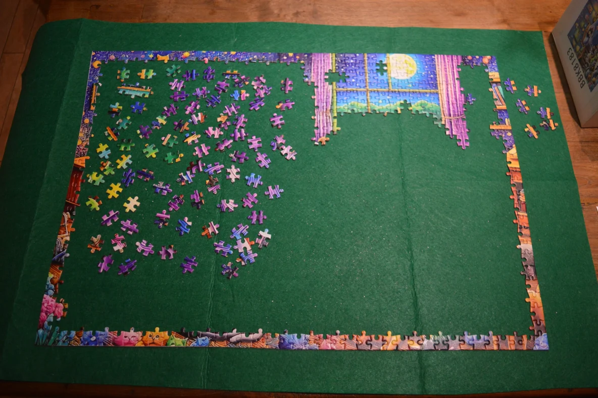 Het is ik weet niet hoe lang geleden dat ik voor het laatst een legpuzzel heb gemaakt. Als deze klaar is dan liggen er zo’n 50 katten in de kamer